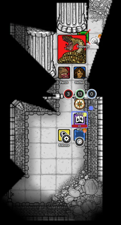 Once it was busy with Perch’s clumsy sword, I thought about getting closer to strike. The snake’s body eased along a low rubble mound and I could have climbed it, but climbing that heap meant being cut off and pinched between rock and beast. So I skirted along the wall instead, creeping forward on careful feet, keeping as low as a gob can. The torch guttered and went out—naturally at the worst moment—and I paused, listening to scales move and Theowyn’s muffled sounds. I still did not want to climb the pile if I could help it.